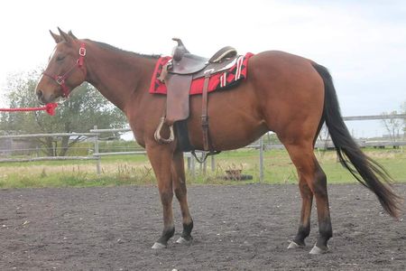 Penny 2009, Registered quarter horse, eligible for the SBRA barrel racing Bonanza and the Canadian Barrel horse Incentive Program. She is 15'3 hands. UTD with teeth, feet, vaccines and deworming. No health issues. Penny has been there done that! Rode on trails, ponied other horses, good around cattle and patterned on the barrels. She is very smooth to ride, very responsive, great long stride will be able to put miles on. Loves kids, used for beginners lessons for two seasons. * suitable for beginners and intermediate.